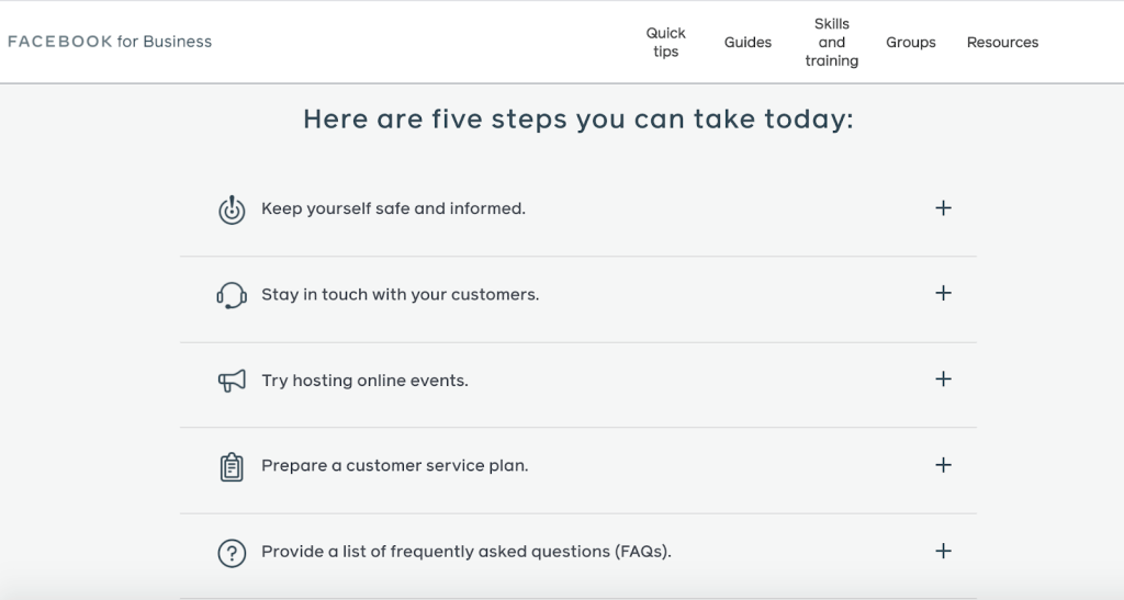 Brands like Facebook, as mentioned above, are creating content hubs to keep customers informed. What can you do? Small to medium businesses can utilize blogs to create content relevant to their industry or even as a means to update their customers as to the measures being taken at their business.