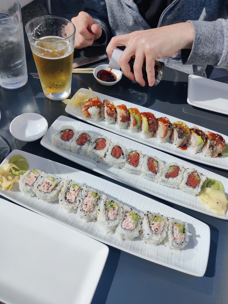 That evening when we got back to our hotel, we decided to go on a walk down towards Mission Beach. We went to a sushi restaurant called Cannonball, it’s right on the beach. We sat up on their patio and had a view of the sea with our drinks and sushi.