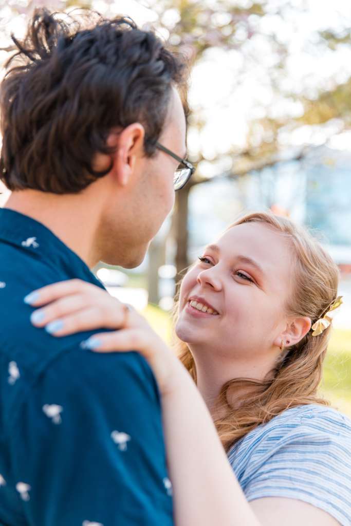 Cherry blossom season is one of the most magical times of the year for engagement photoshoots in Toronto. And that’s exactly what Alex and Sarah decided to do in May 2022. As their photographer, I had the pleasure of capturing their love among the stunning cherry blossom trees at Exhibition Place.