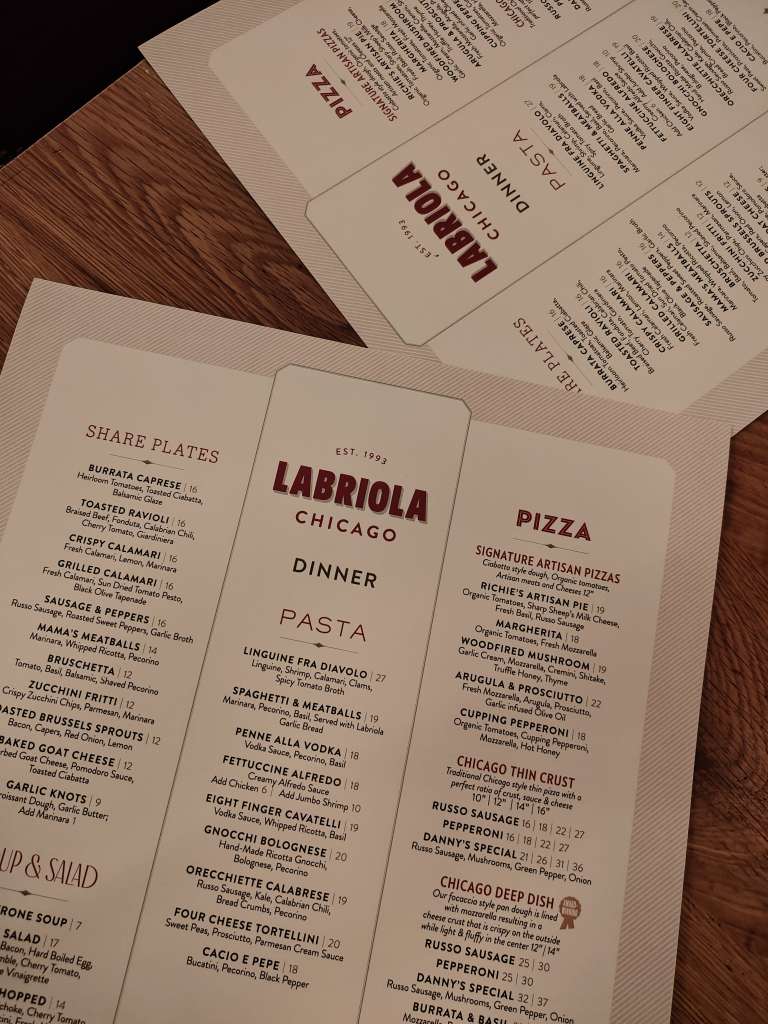 After returning to the hotel to freshen up, we enjoyed an early dinner at Labriola. Remember to make a reservation, as this popular spot tends to get busy. Even though we had a reservation, we still ended up waiting 20 minutes to be seated, so keep this in mind when making your plans.